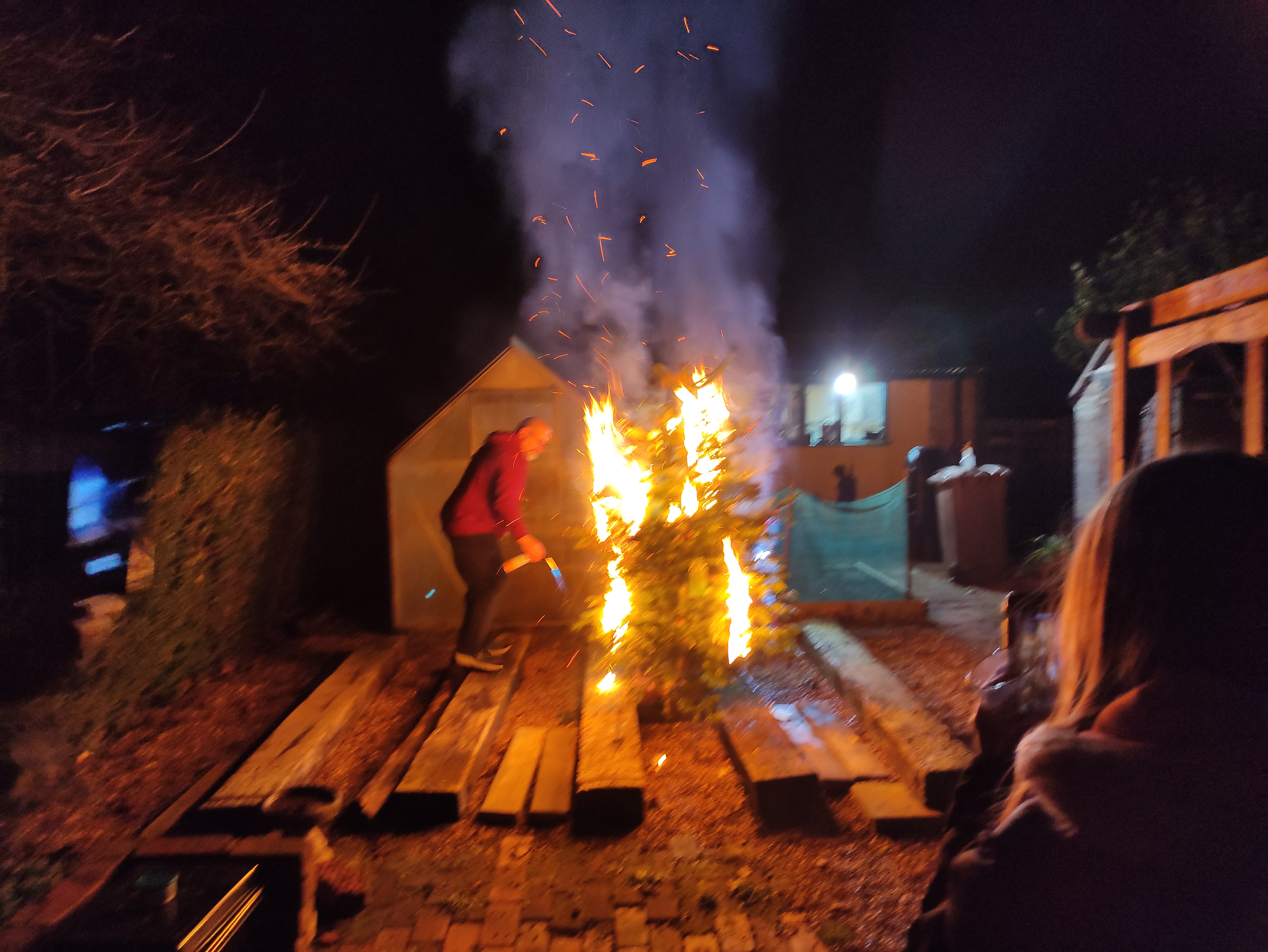 We were kindly invited by Gary & Mandy (or Gandy as I have been calling them) to their annual tree burning ceremony. By way of explanation – Everyone is given a label to write a wish on. If the tree and the wish burns, it may well come true.
